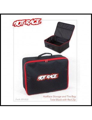 Hotrace tire and storage bag for 1/8th buggy: fits up to 12 tire sets and all buggy models. Black with red zip version.